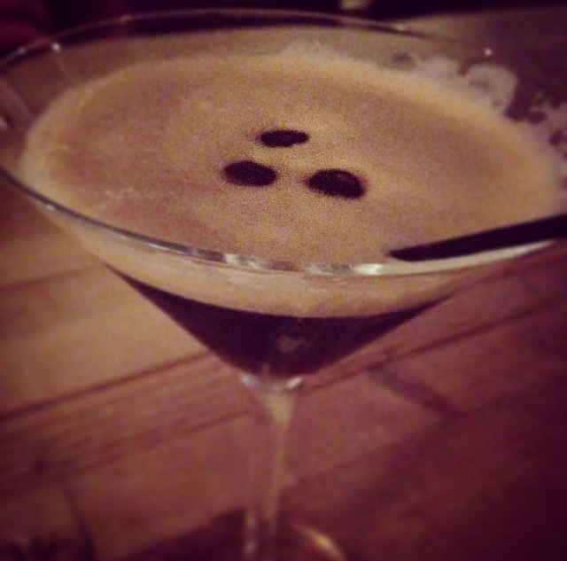 That would be two parts vodka and two parts espresso to one part Kahlua, in case you’re wondering. Shaken vigorously over ice. Espresso beans optional.